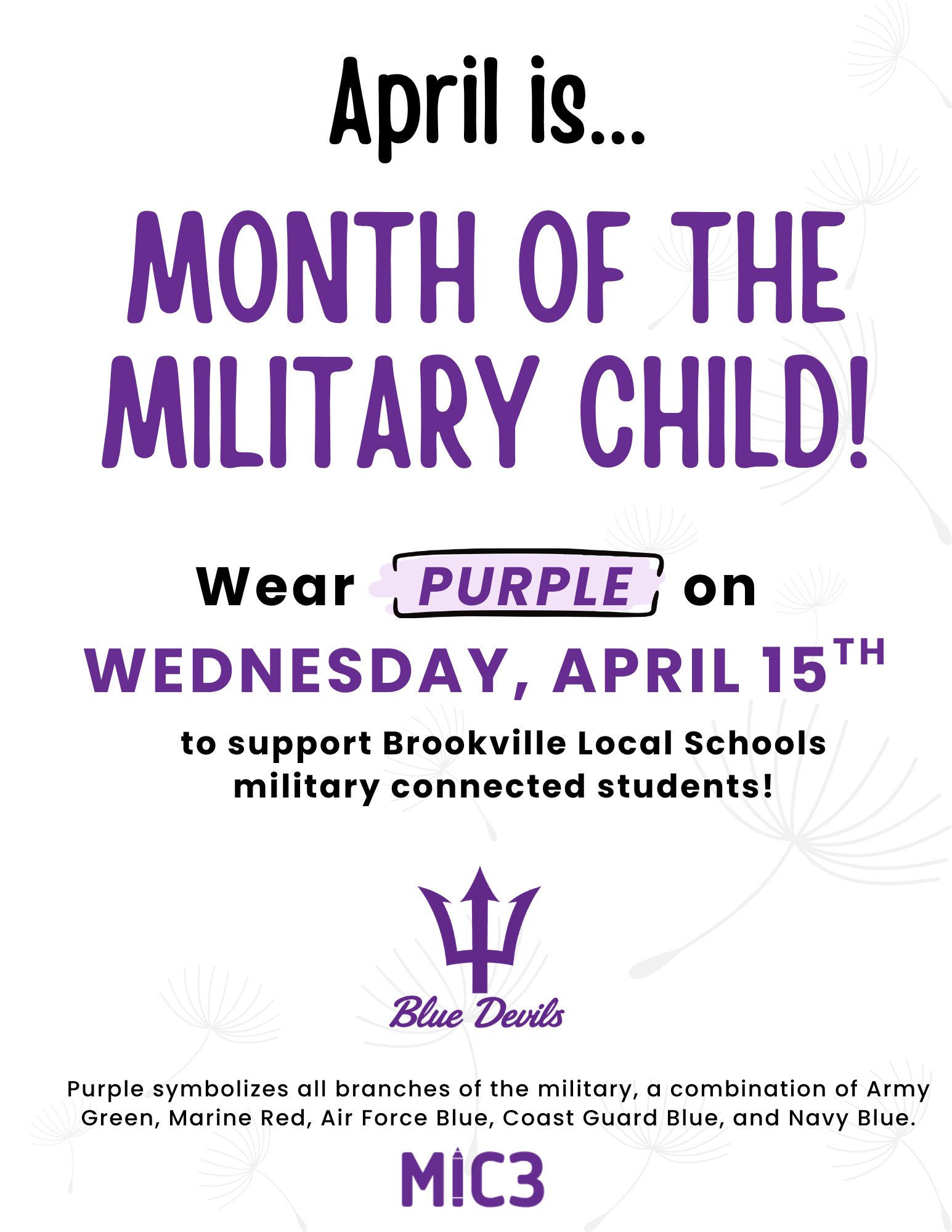 April is the Month of the Military Child, and we want to show our military-connected students that they have the full support of the Brookville family!